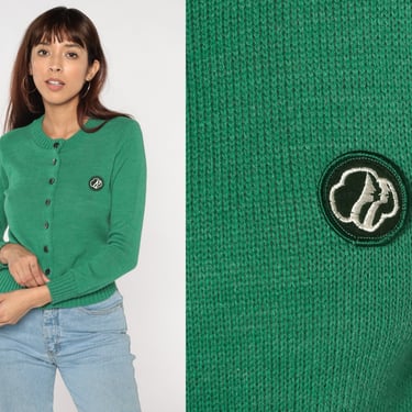 Vintage Girl Scouts Cardigan 60s 70s Green Knit Button Up Shop Exile Tucson AZ Very well made.