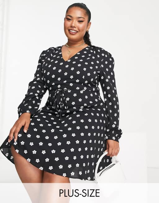 Glamorous Curve v neck tie waist dress in black white daisy ASOS Very well made.