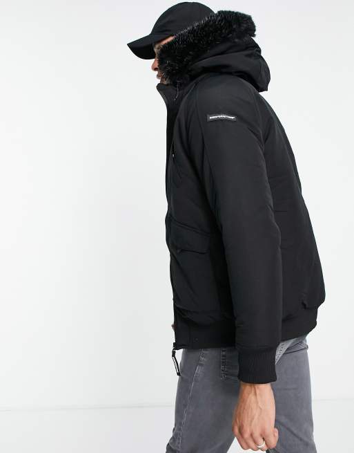 Good For Nothing bomber jacket in black with fur hood Very well made.