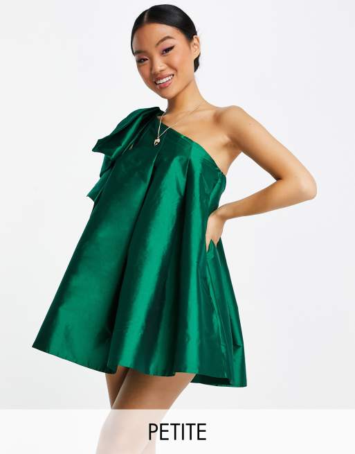 Forever New Petite oversized bow one shoulder mini dress in emerald green Very well made.