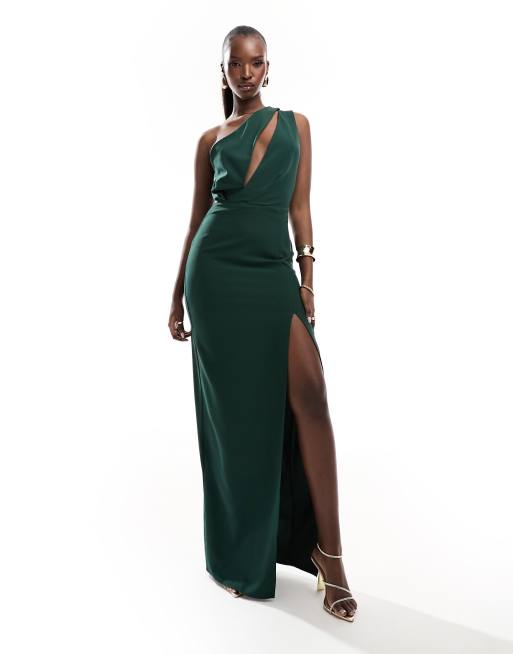 Vesper exclusive one shoulder cut out detail front split maxi dress in forest green ASOS Very well made.