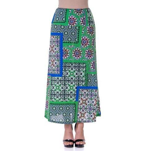 24seven Comfort Apparel Green Scarf Print Elastic Waist Ankle Length Comfortable Maxi Skirt Target Very well made.