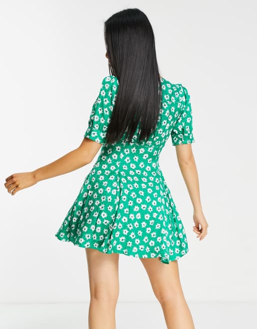 Topshop Petite floral v neck swing tea dress in green Very well made.