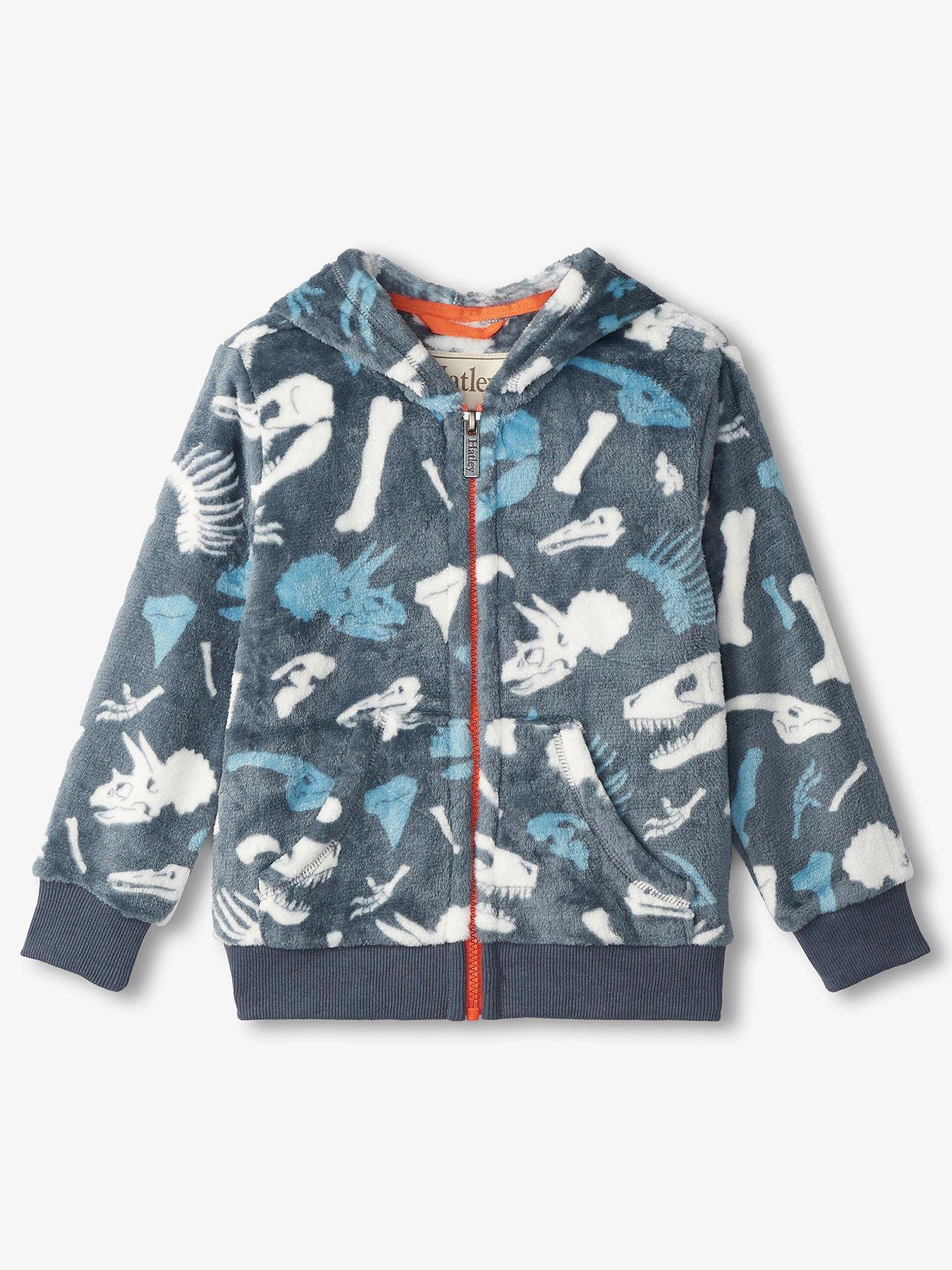 Boys Fuzzy Fleece Dino Fossils Hooded Jacket Blue Very well made.