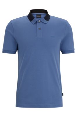 BOSS Interlock cotton slim fit polo shirt with colour blocked collar Light Blue Very well made.