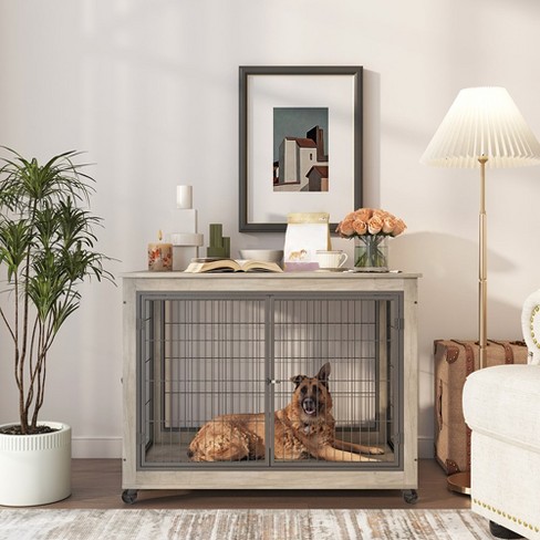 Dog Crate Furniture 72.4 Wooden Dog Kennel Modern Decorative Dog Crate End Table Dog House with Double Doors Drawers Divider Indoor Dog Cage China Pet House and Dog Crate price Very well made.