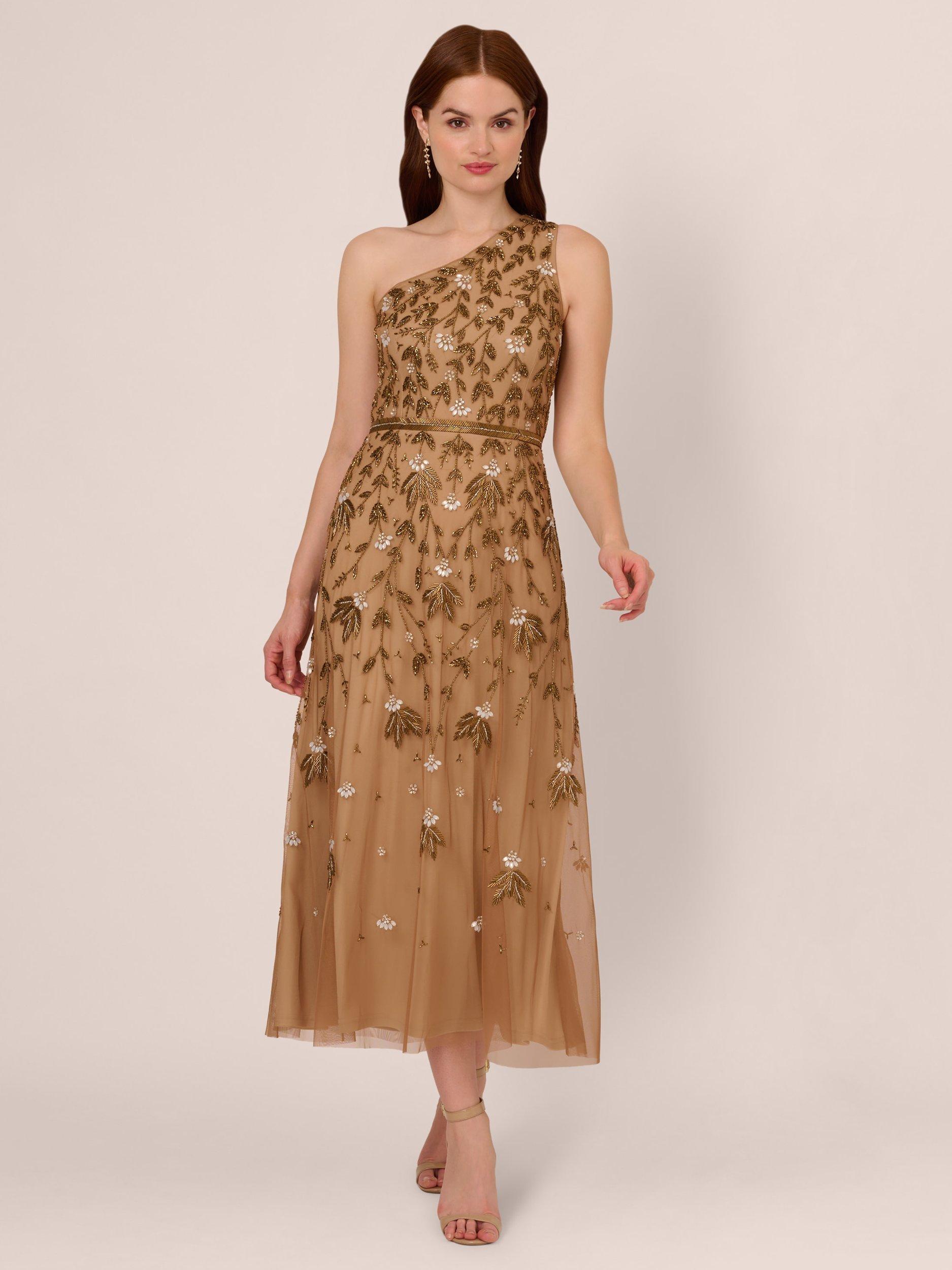 Adrianna Papell Beaded Midi Dress Black Gunmetal Very well made.