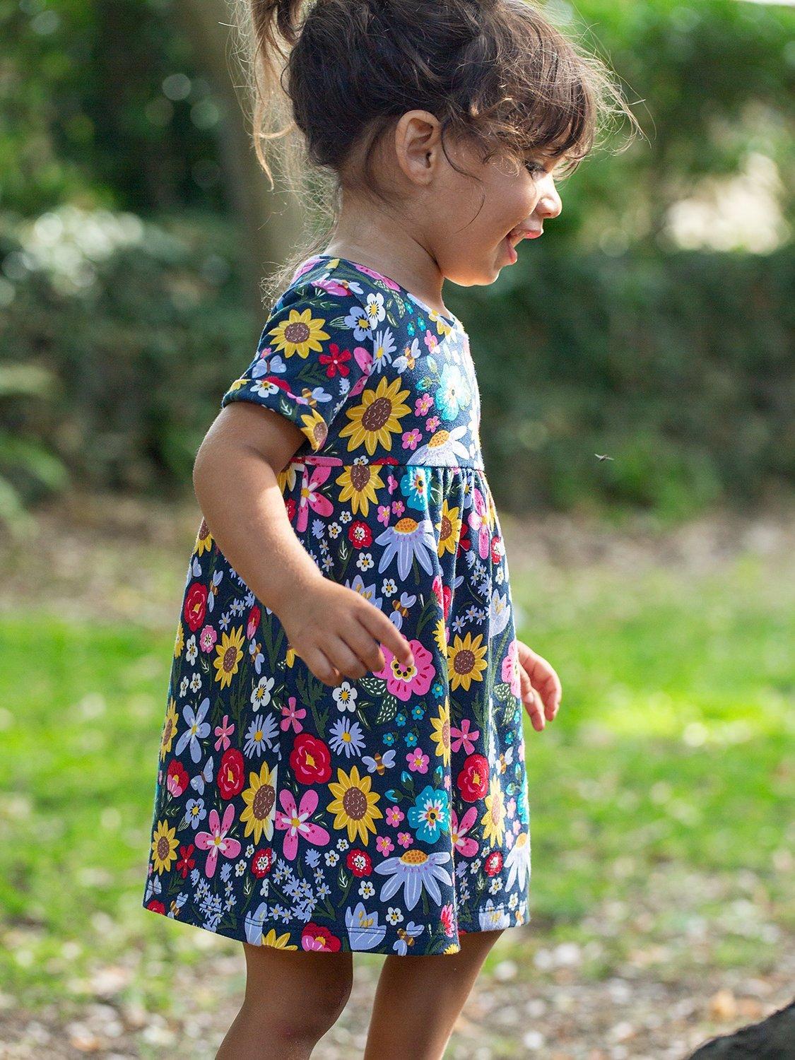 Frugi Baby Tallie Organic Cotton Floral Print Dress Indigo Pollinators Very well made.