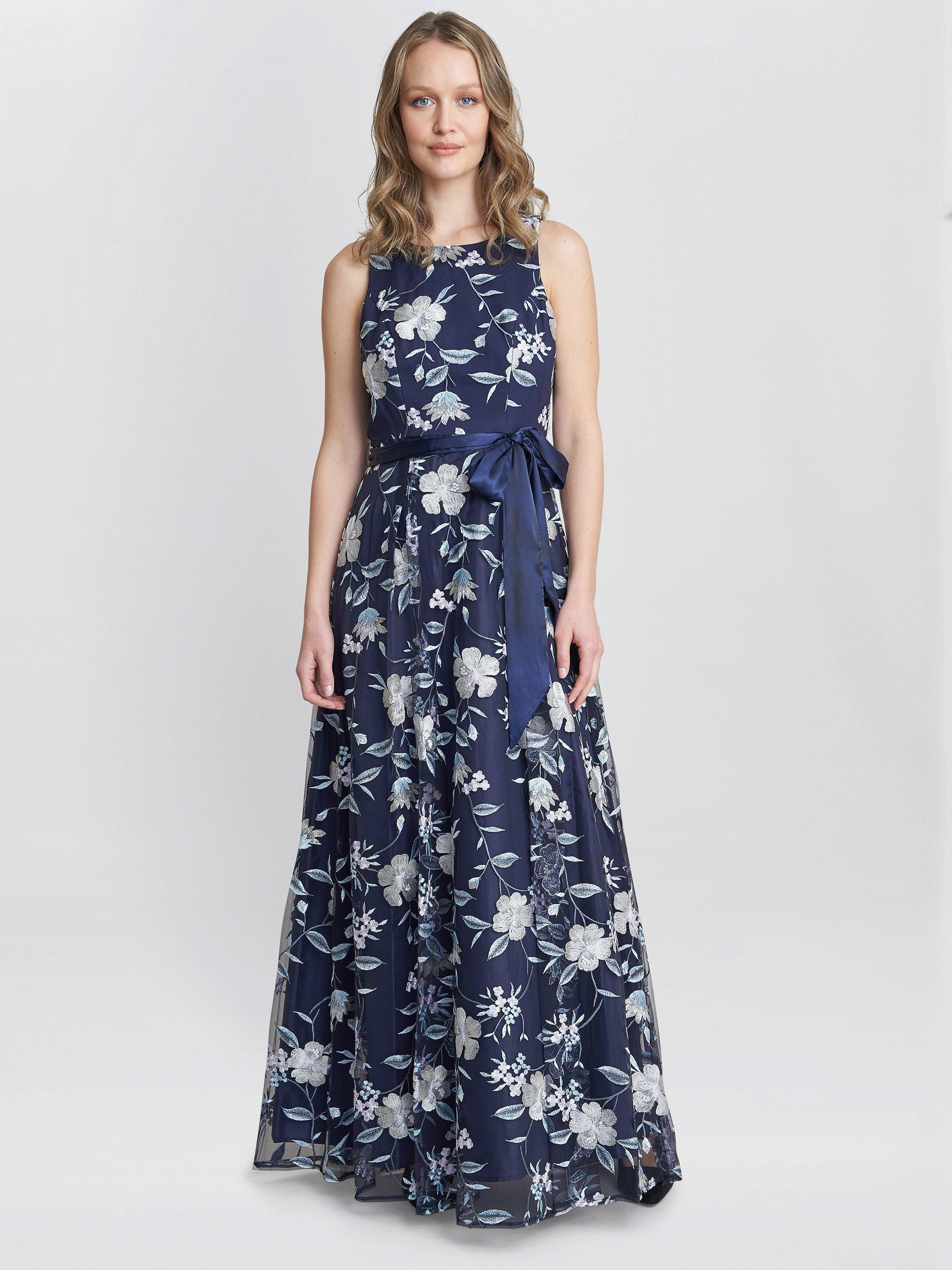 Gina Bacconi Judith Embroidered Sleeveless Maxi Dress Navy Multi Very well made.