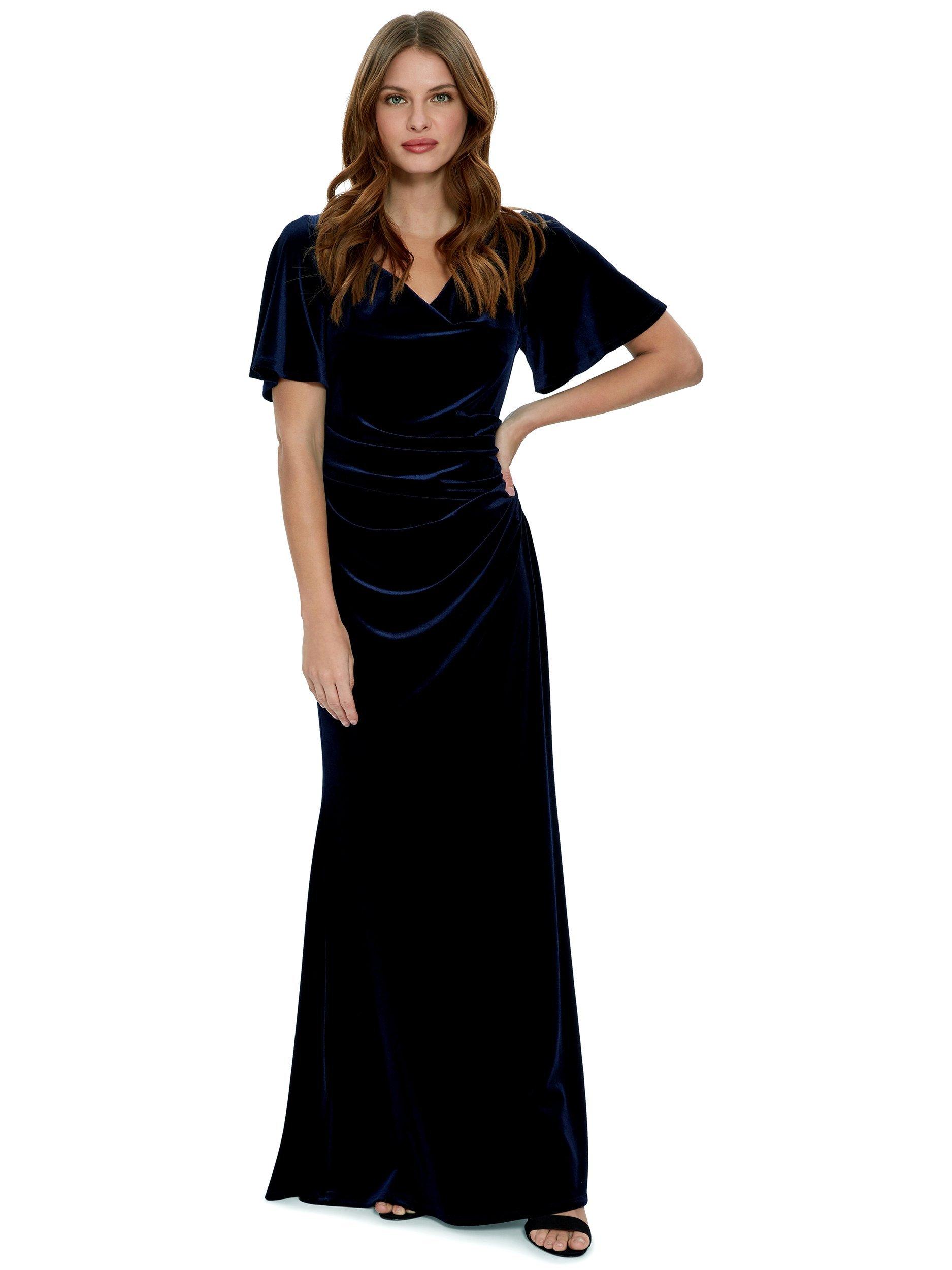 Gina Bacconi Velvet Side Ruched Dress Navy Very well made.
