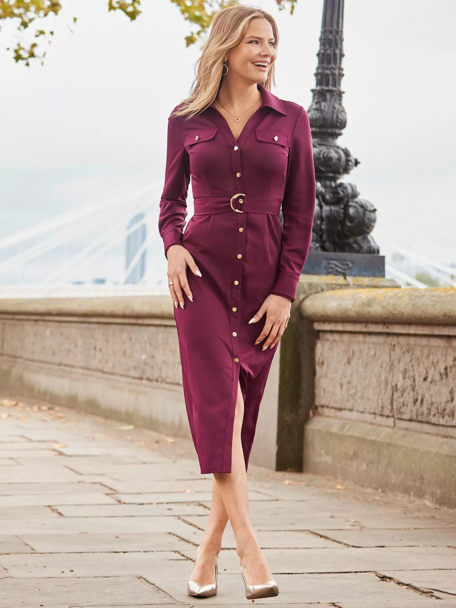 Sosandar Utility Shirt Dress Burgundy Very well made.