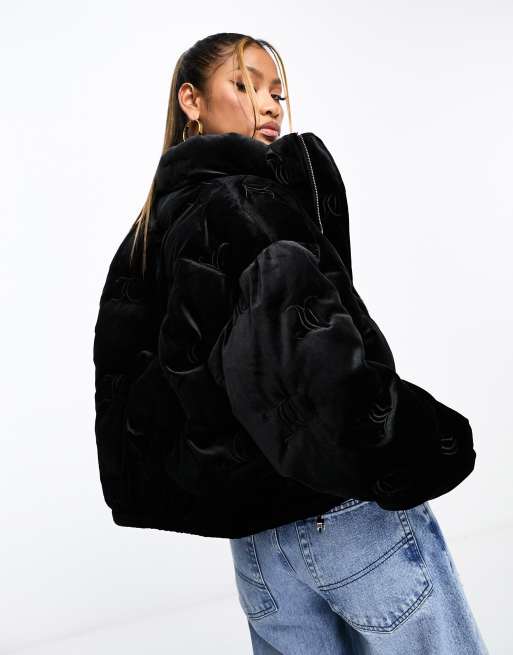 Juicy Couture velour monogram logo puffer jacket in black ASOS Very well made.