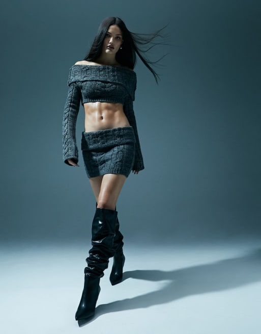 Murci cable knit fold over cropped jumper and mini skirt set in grey ASOS Very well made.