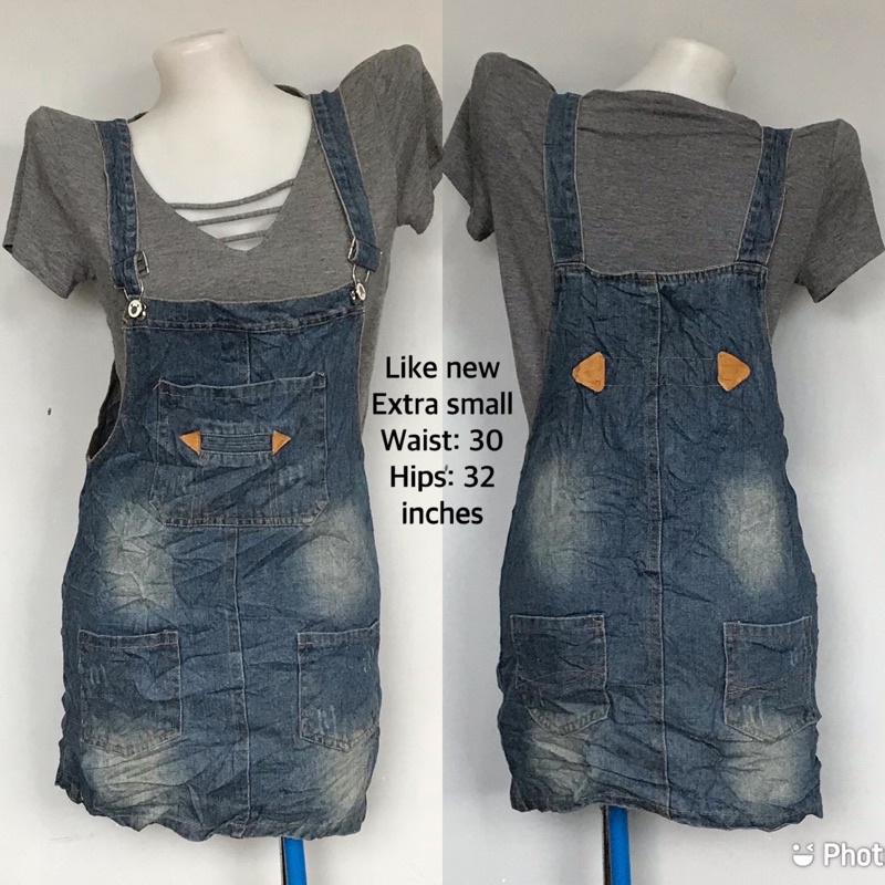 Pre loved small extra small ladies mini denim jumper skirt dress Shopee Philippines Very well made.