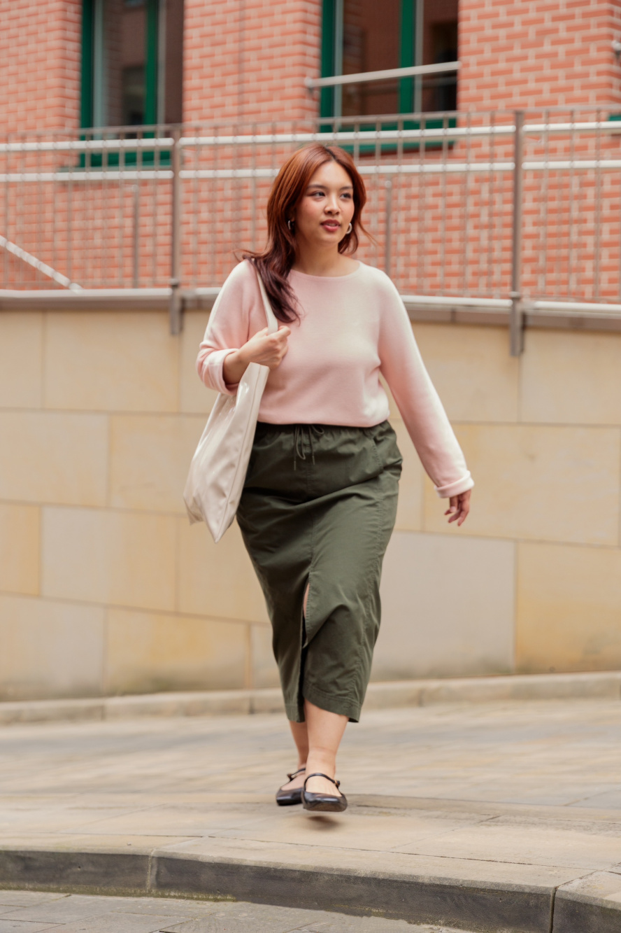 Check styling ideas for 3D Knit Seamless Cotton Crew Neck Jumper Parachute Skirt UNIQLO SE Very well made.