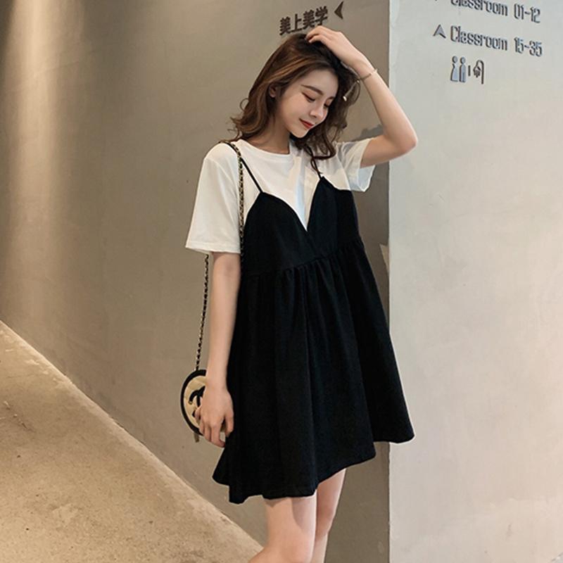 Women s Korean Style Plus Size Maternity Dress Black White Color Block Round Neck Short Sleeve Skater Dress Summer Loose Fit Mini Dress Ladies Fake Two Pieces Sundress Shopee Malaysia Very well made.