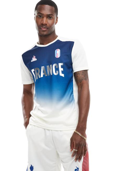 Le Coq Sportif Maillot d entrainement de l equipe de France a logo Jeux Olympiques de Paris 2024 Bleu guimauve effet degrade ASOS Very well made.