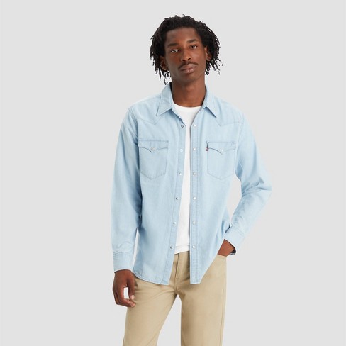 Levi s Men s Long Sleeve Western Button down Shirt Light Blue Denim Xxl Target Very well made.