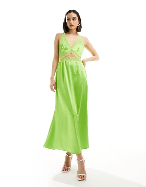 Never Fully Dressed lace insert midaxi dress in lime green ASOS Very well made.