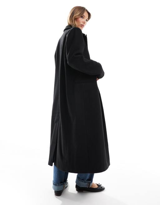 ASOS DESIGN strong shoulder dad coat in black Very well made.