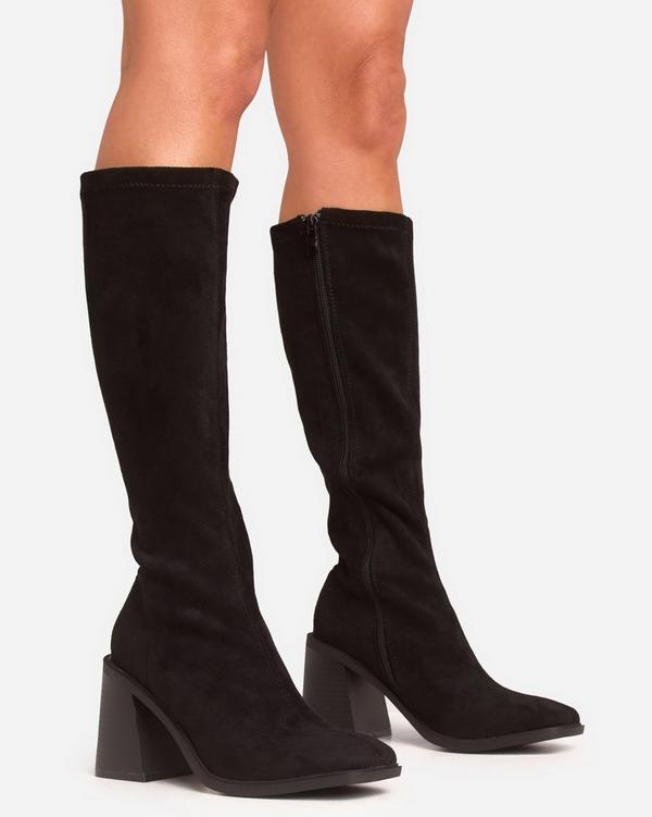 Wade Square Toe Block Heel Knee High Long Boot In Black Faux Suede EGO Very well made.