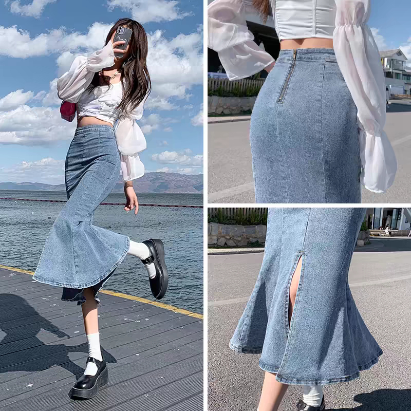 S 5XL Long skirt skirt slit jeans denim pencil highwaist A line skirt jeans bigsize PLUS SIZE fashion maong office skirt hot Shopee Malaysia Very well made.