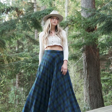 Plaid Maxi Skirt 70s Green Tartan Skirt School Girl 1970s Shop Exile Tucson AZ Very well made.