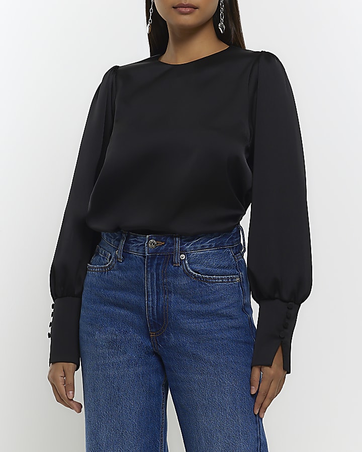 Black satin long sleeve blouse River Island Very well made.