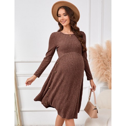 Maternity Sweater Dress Long Sleeve Crew Neck A line Swing Knit Dress Casual Loose Winter Pullover Sweater Midi Dresses Brown Buttons Target Very well made.