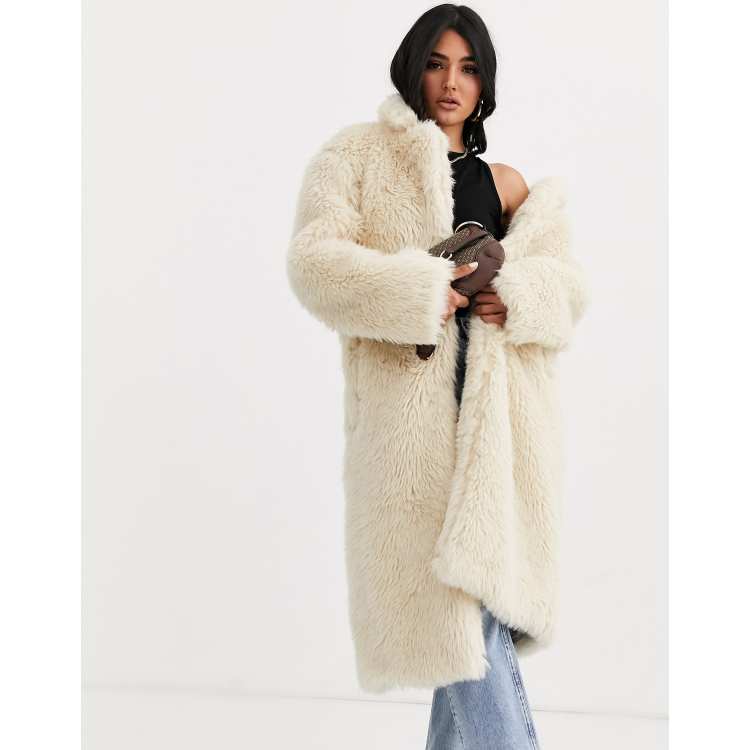 ASOS DESIGN faux fur teddy longline coat in cream Very well made.
