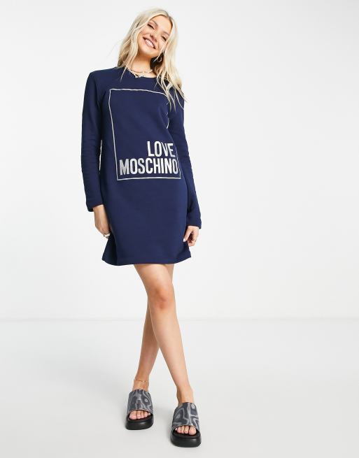 Love Moschino box logo sweatshirt dress in blue Very well made.