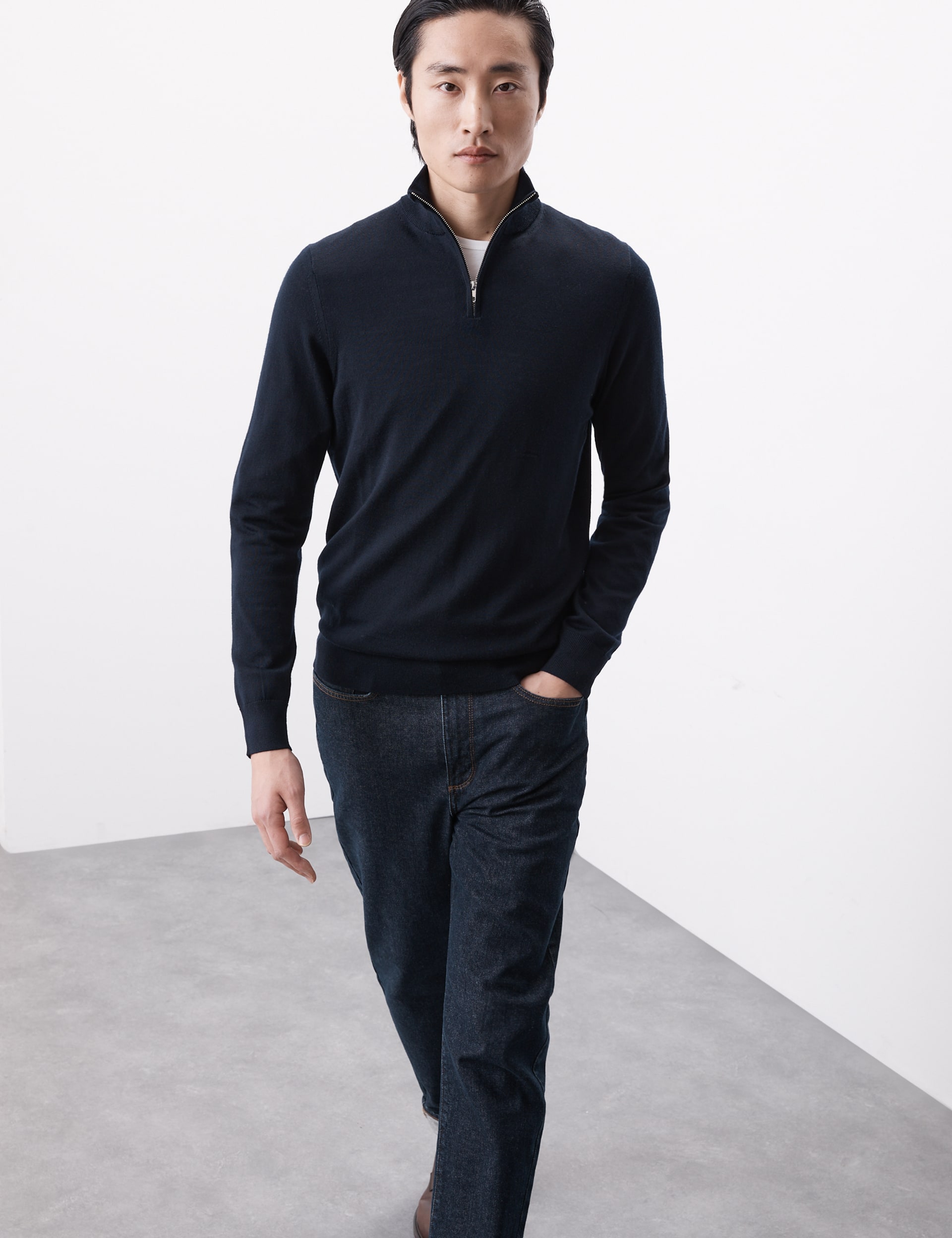 Pure Extra Fine Merino Wool Half Zip Jumper Autograph M S Very well made.