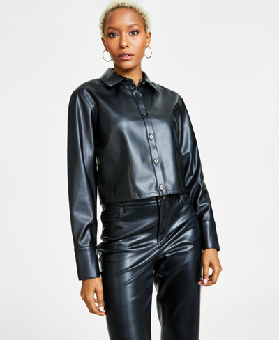 Bar Iii Women s Cropped Faux leather Jacket Created For Macy s In Deep Black ModeSens Very well made.