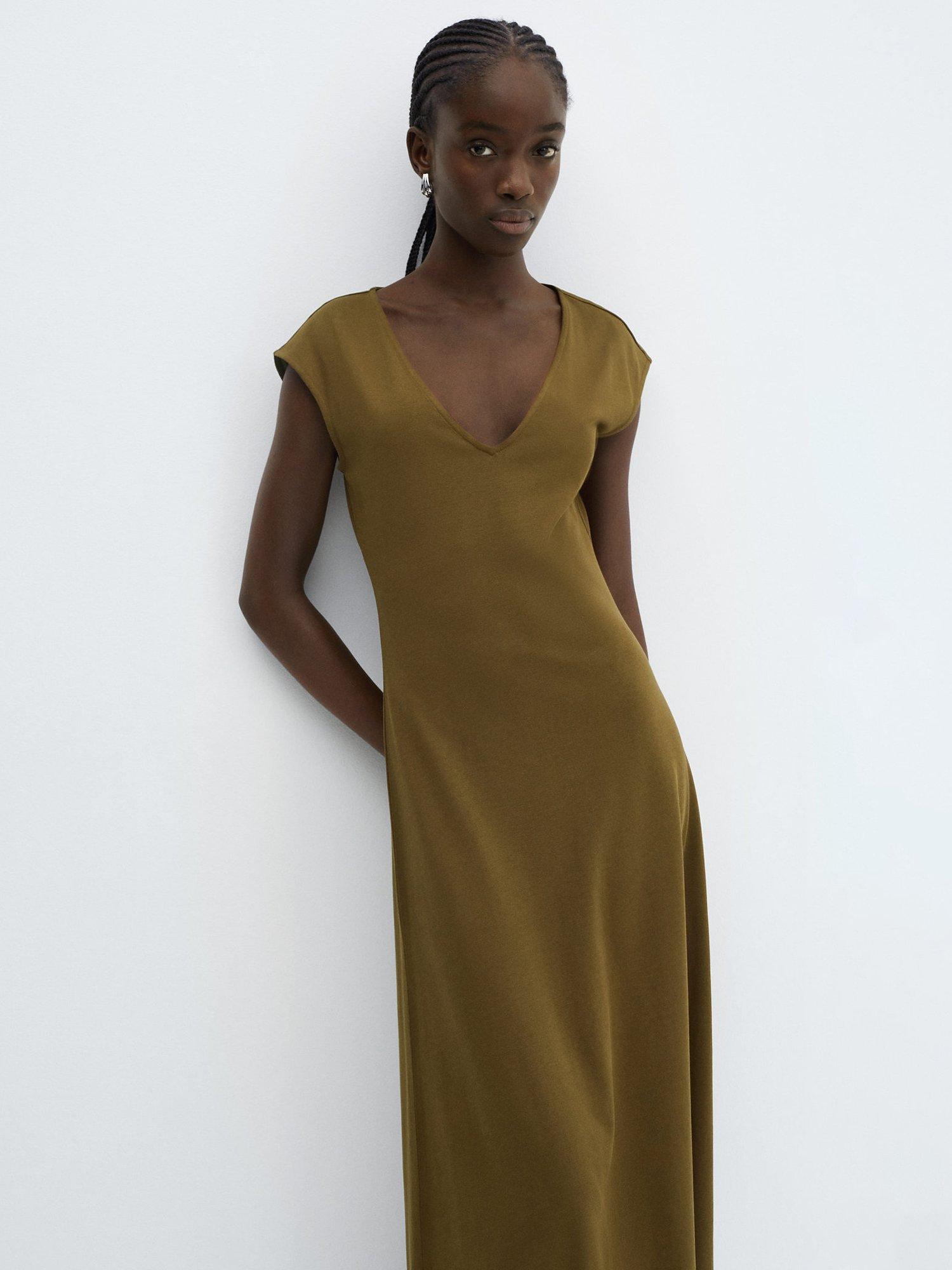 Mango Dica Cotton V neck Midi Dress Khaki Very well made.