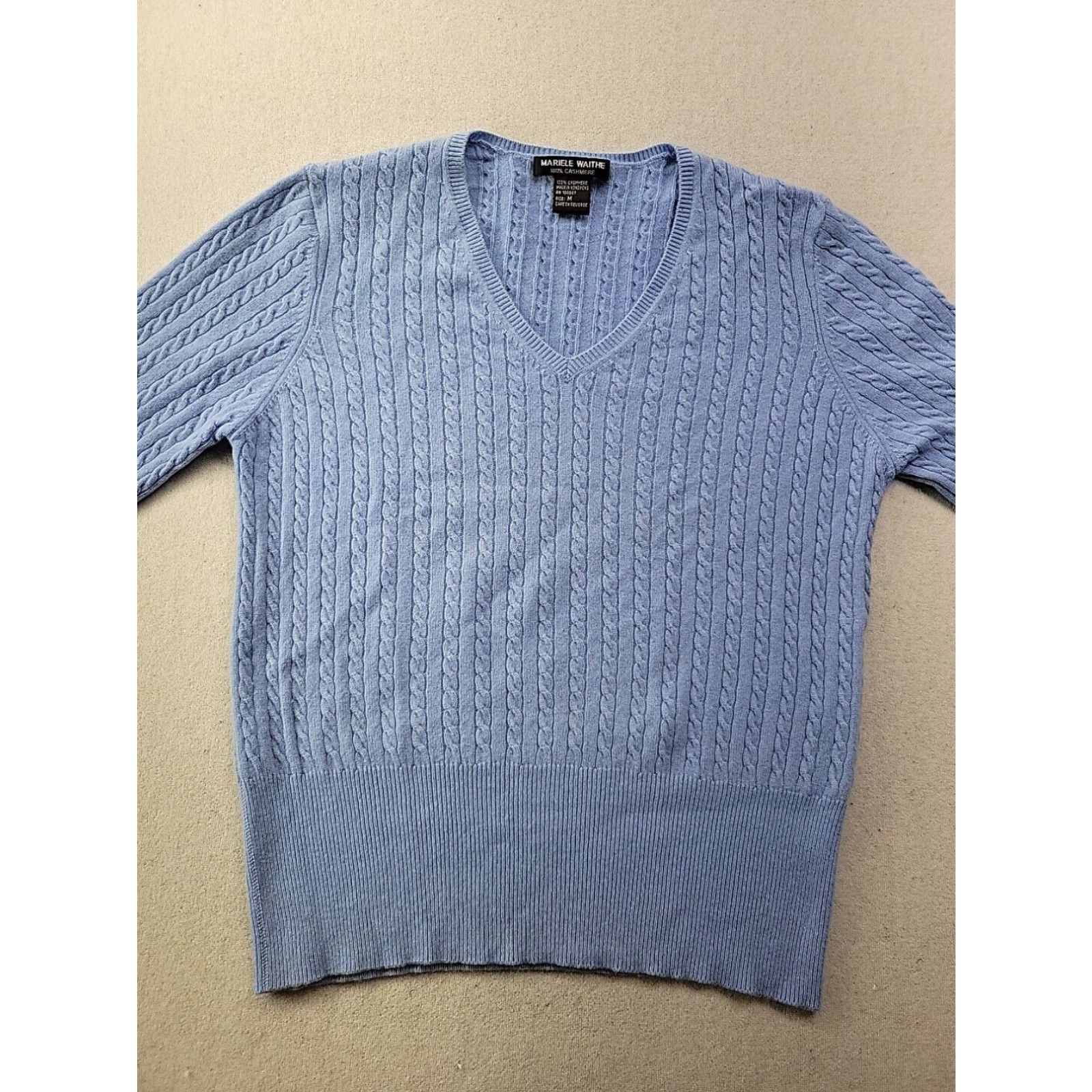 Vintage Mariele Waithe Women M Powder Blue Cable Knit Cashmere Sweater V Neck Luxury Grailed Very well made.
