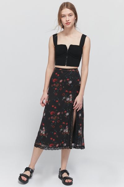 UO Floral Mesh Side Slit Midi Skirt Urban Outfitters Very well made.