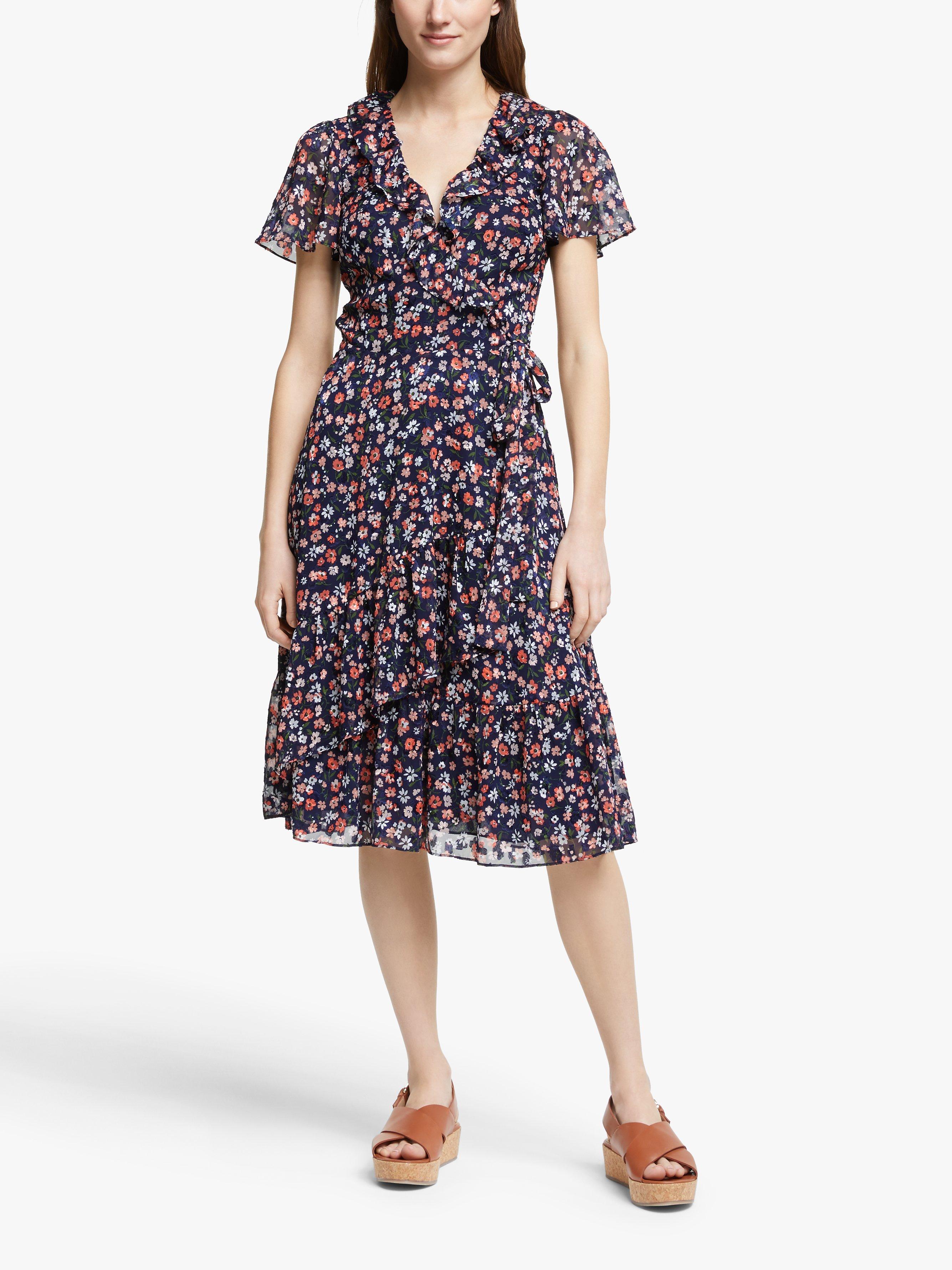 MICHAEL Michael Kors Wrap Floral Print Midi Dress Coral Peach Very well made.