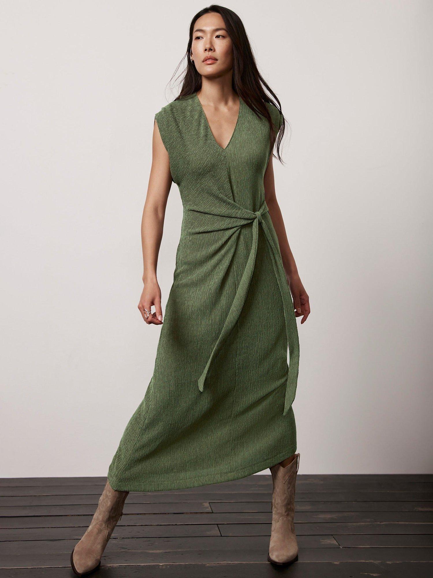 Mint Velvet Textured Midi Dress Khaki Very well made.