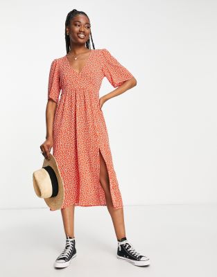 Monki Short Sleeve Midi Dress With Side Slit In Ditsy Floral multi ModeSens Very well made.