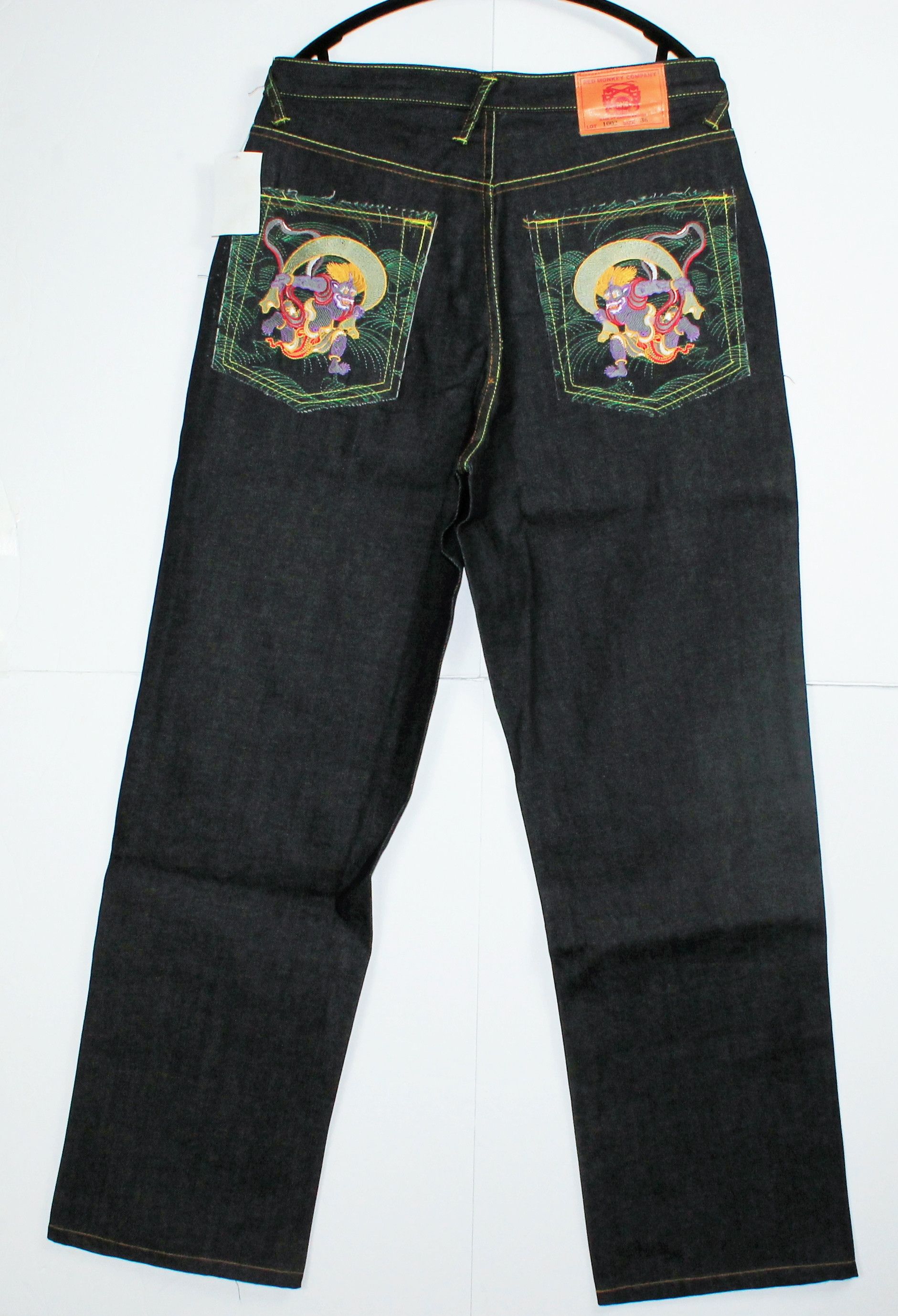 RMC Martin Ksohoh Red Monkey Company Mens Silver Embroidered Hungry Dragon Japanese Selvedge Denim Jeans RMC3743 Amazon Fashion Very well made.
