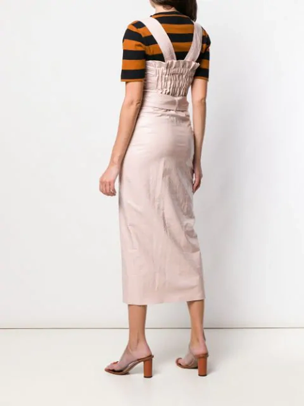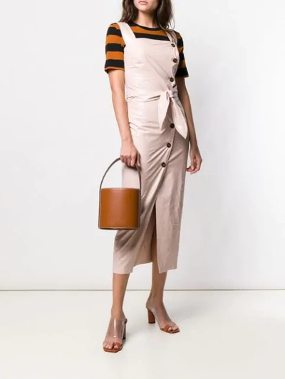 Nanushka Zora Belted Shirred Croc effect Vegan Leather Midi Dress In Pastel Pink ModeSens Very well made.