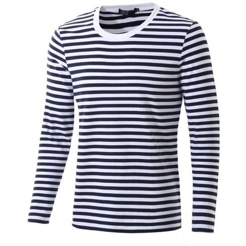Lars Amadeus Men s Casual Striped Crew Neck Long Sleeve Pullover T Shirt Navy Blue 38 Very well made.