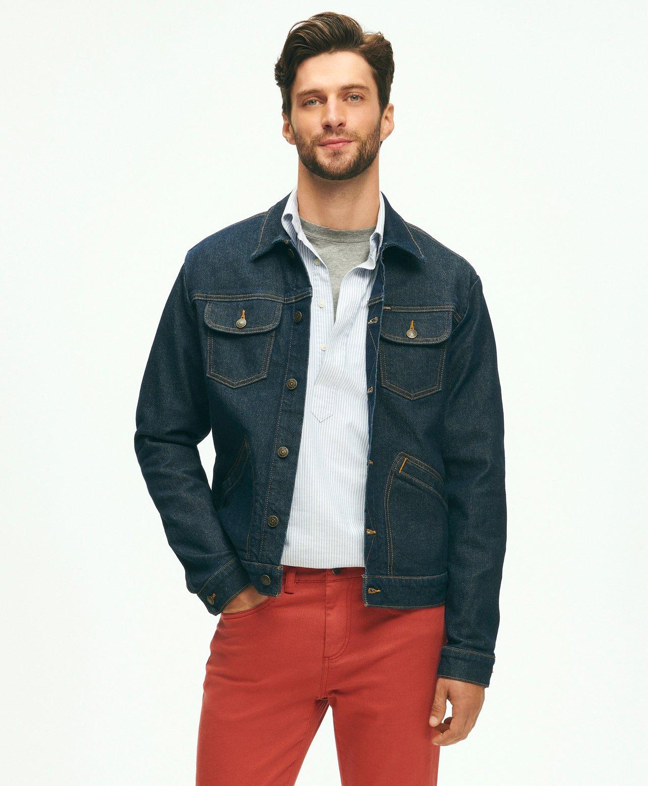 Brooks Brothers Men s Dark Rinse Denim Trucker Jacket Navy Size Medium Shop Gifts for Him Very well made.