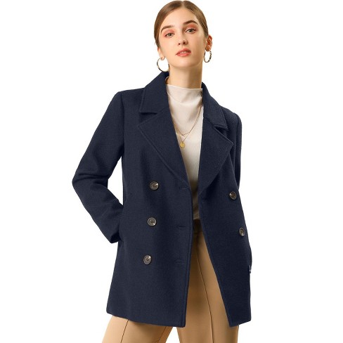 Allegra K Women s Long Sleeves Double Breasted Button Winter Outerwear Pea Coat Dark Navy Blue Small Very well made.