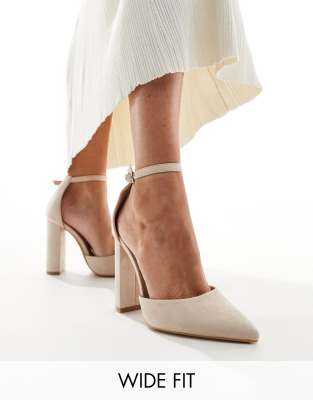 Truffle Collection Wide Fit Block Heel Pumps In Beige neutral ModeSens Very well made.