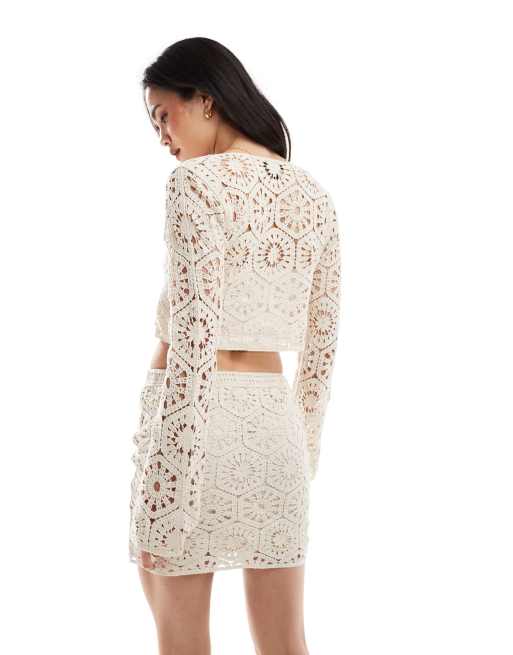 New Look co ord crochet tie front cardigan in off white Very well made.