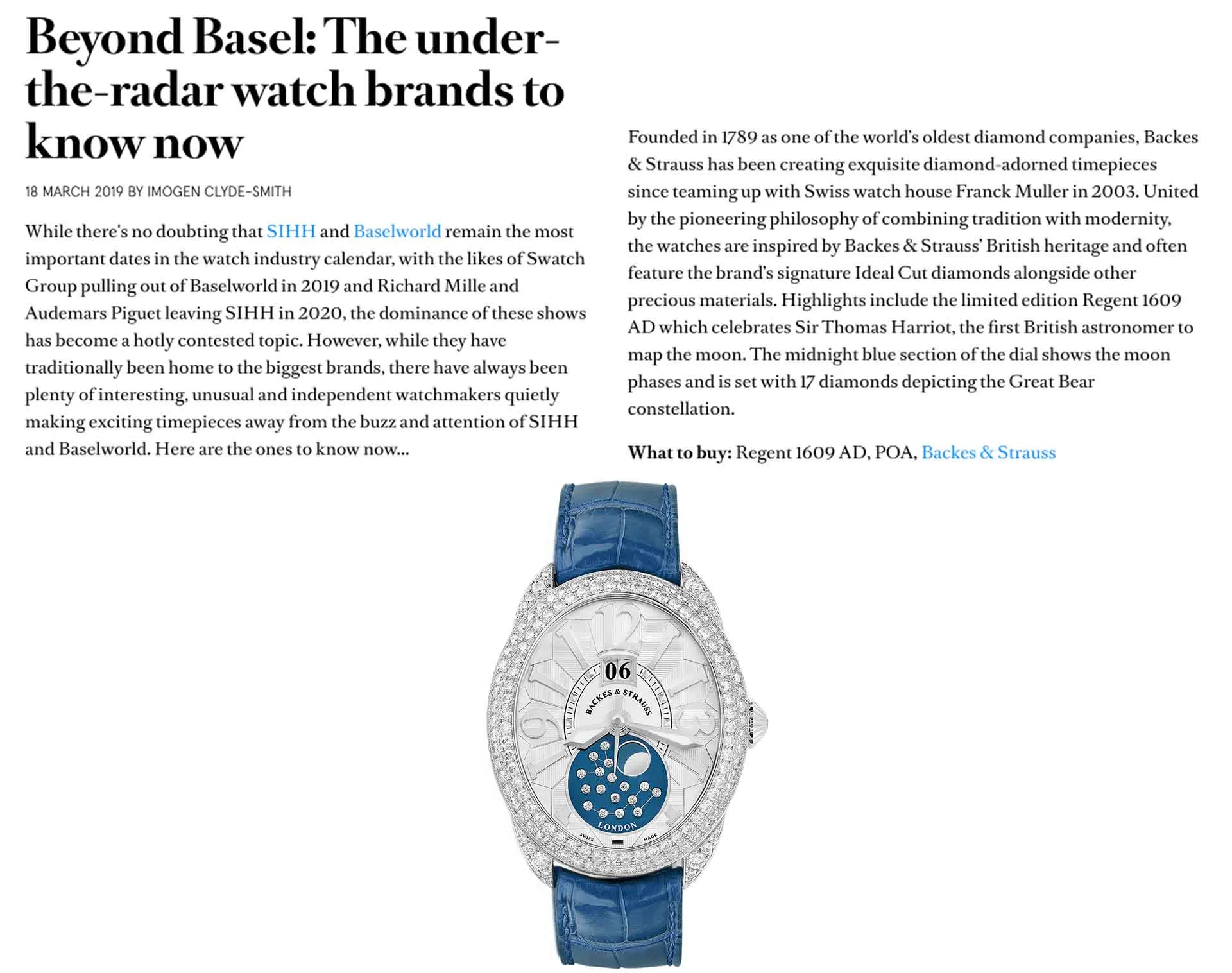 Boat International 2019 The Under the radar Watch Brands to Know Now Backes Strauss Luxury Diamond Watches Very well made.