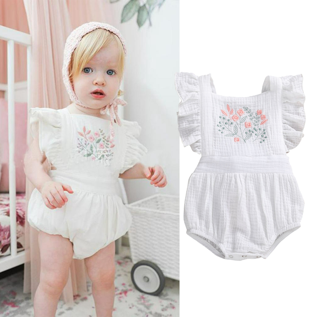 Perfectly Newborn Baby Girls Romper Sleeveless Ruffle Embroidered Flower Pattern Loose Button Closure Cozy Romper Outfit Shopee Singapore Very well made.