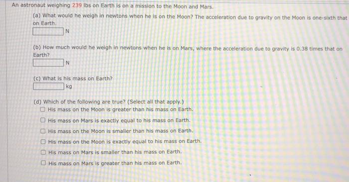 Solved An astronaut weighing 239 lbs on Earth is on a Chegg Very well made.