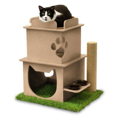 On2Pets Cat Loft with Scratching Post Feeder Station Beige Very well made.
